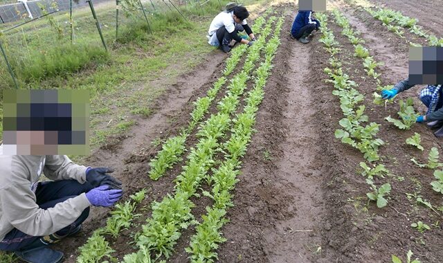 【農業ジョブトレ10/14(火)大根と春菊の苗の間引き作業をしました。