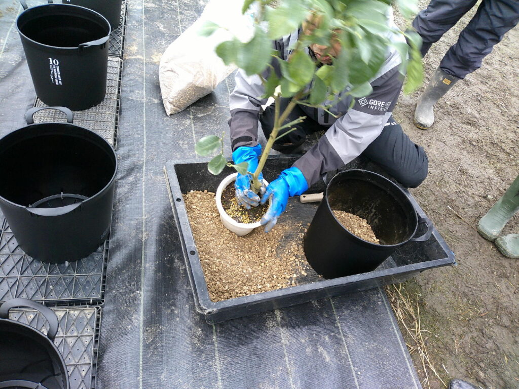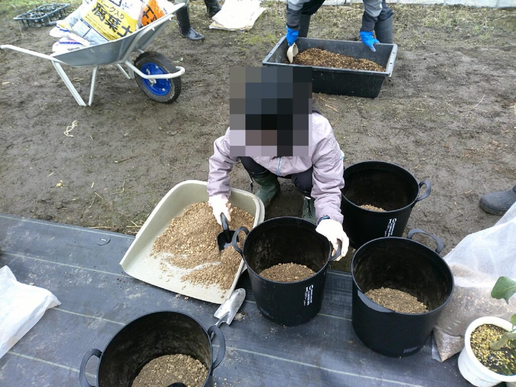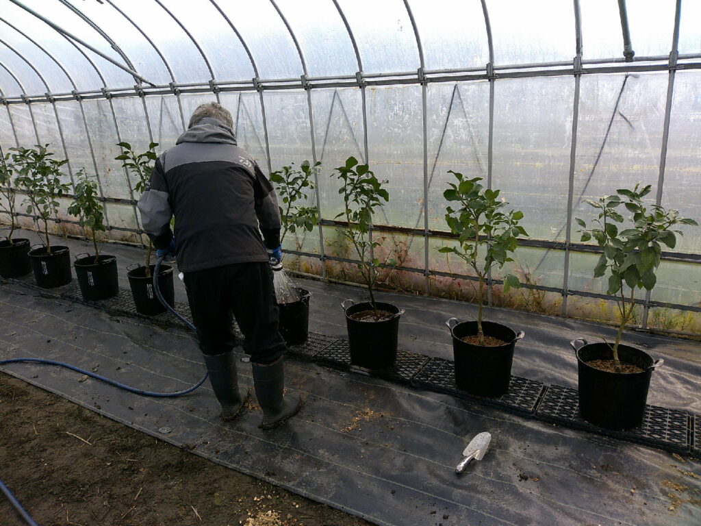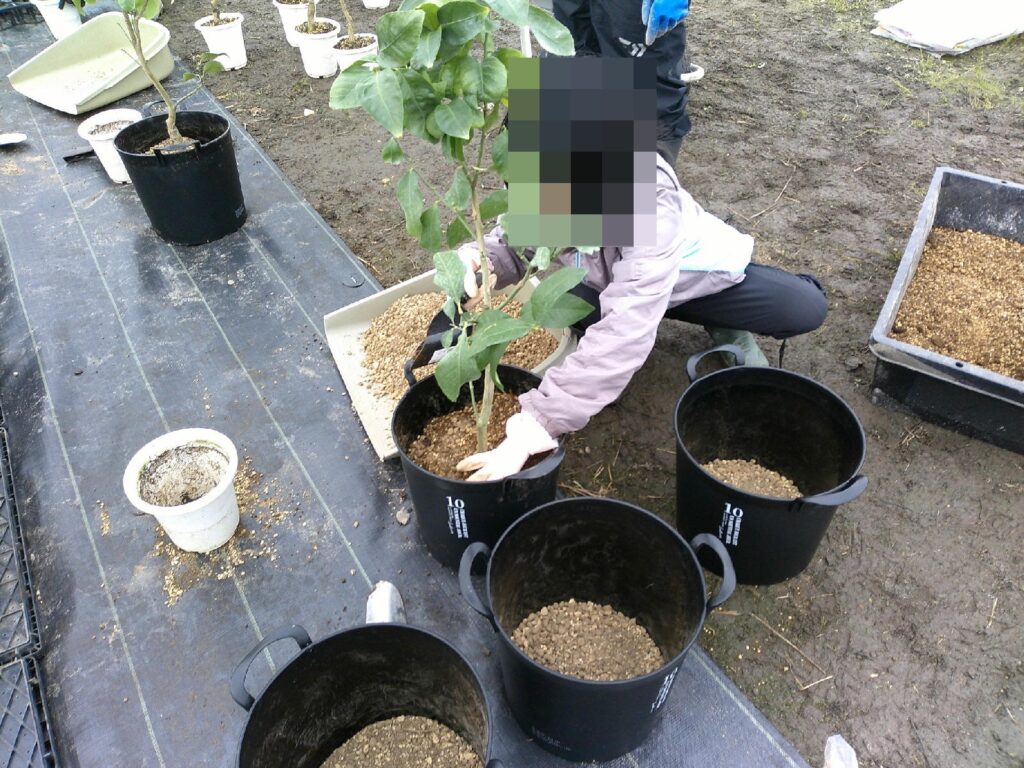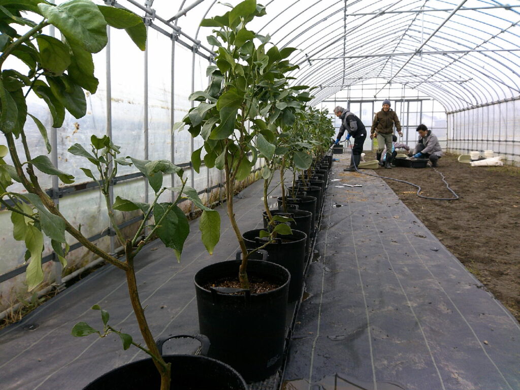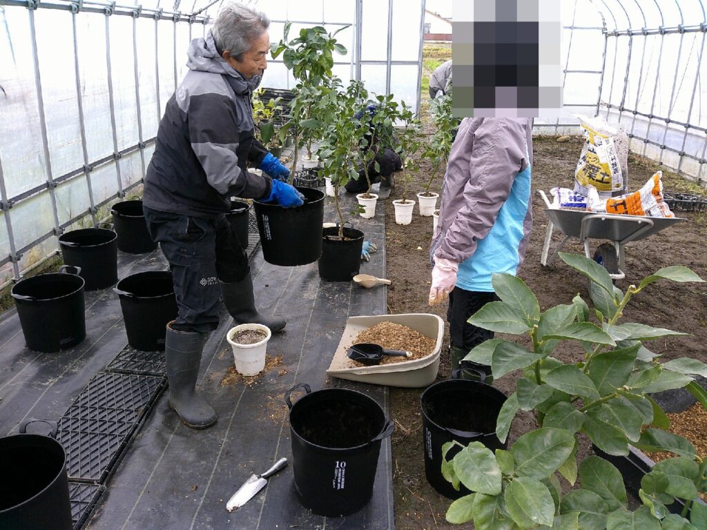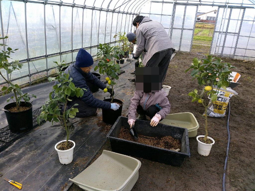 次は別のハウスでレモンの木をプランターに植え替える作業です。