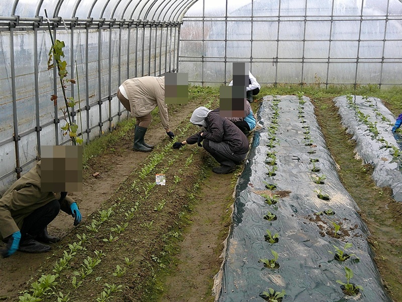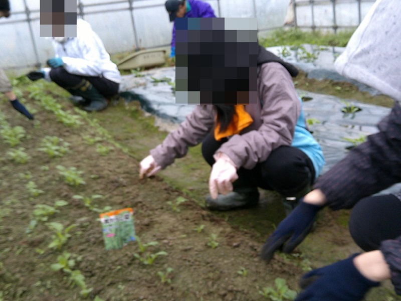 間引きの方法は、いらない株をハサミで切り取りました。こうすると残す株が一緒に抜けてこないので綺麗に間引きできました。
