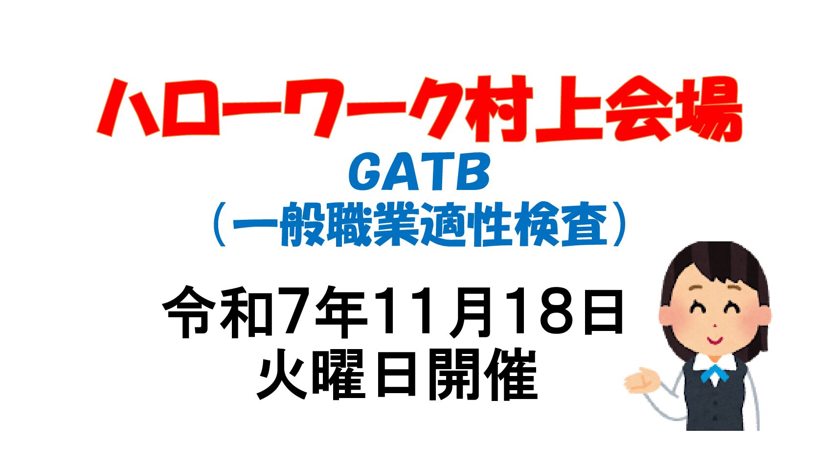 令和7年11月のGATB(一般職業適性検査)は11月18日(火)にハローワーク村上にて行います。