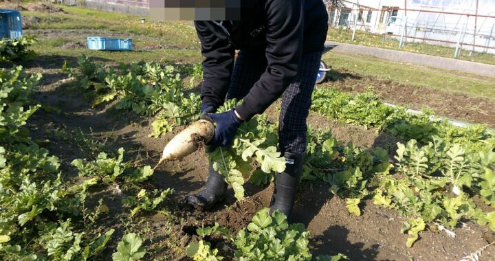 次はネギの収穫です。周りを指導員の方が掘ってくれていました。
