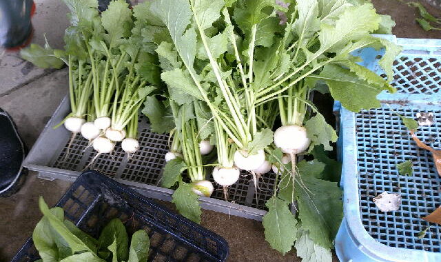 からし菜は茎が折れないようにスコップで土を起こしてから引き抜きました。