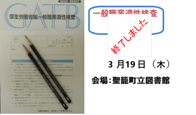 「一般職業適性検査」を出張相談も行っている町のひとつ、聖籠町で月1回開催します。聖籠町立図書館にて今回は定員8名で開催します。