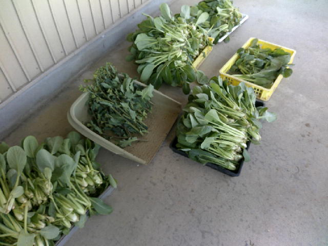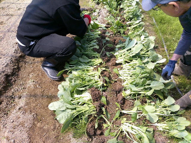 隣の畝には、おり菜が伸びていたので収穫しました。