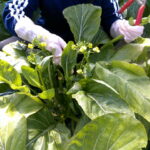 根元からハサミで切って収穫するよう教えて頂きました。間引きで株を抜くと、隣の株を傷める恐れがあるからとのことでした。