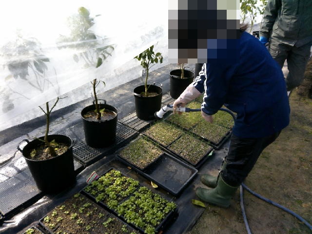 次は別のハウスでレモンの木をプランターに植え替える作業です。